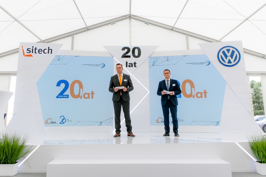On the occasion of the 20th anniversary, on June 15, 2018, representatives of the Volkswagen Group and representatives of the world of politics and science expressed their appreciation for the achievements of both companies being part of Volkswagen Components. That day, the 20th-anniversary opening ceremony of both companies' facilities took place, during which Adam Holewa - Technical Director / SITECH Sp. z o. o. Director and Dirk Strümpfler - President of the Management Board of Volkswagen Motor Polska Sp. z o. o. jointly conducted a specially prepared programme for the anniversary celebration for this important event.